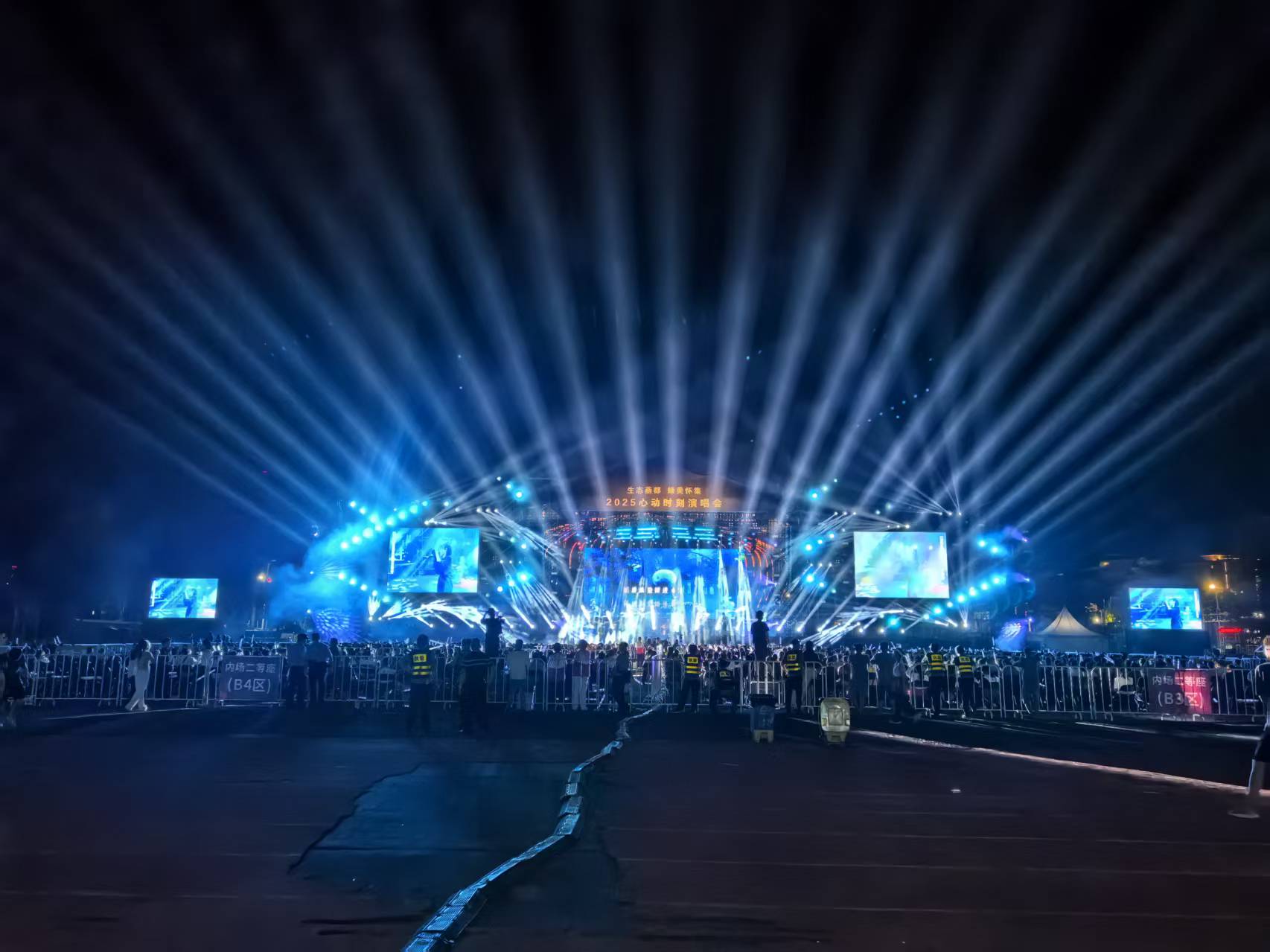 光束隨合唱節(jié)奏輕輕起伏,形成 “萬(wàn)人同沐光海” 的震撼場(chǎng)景。