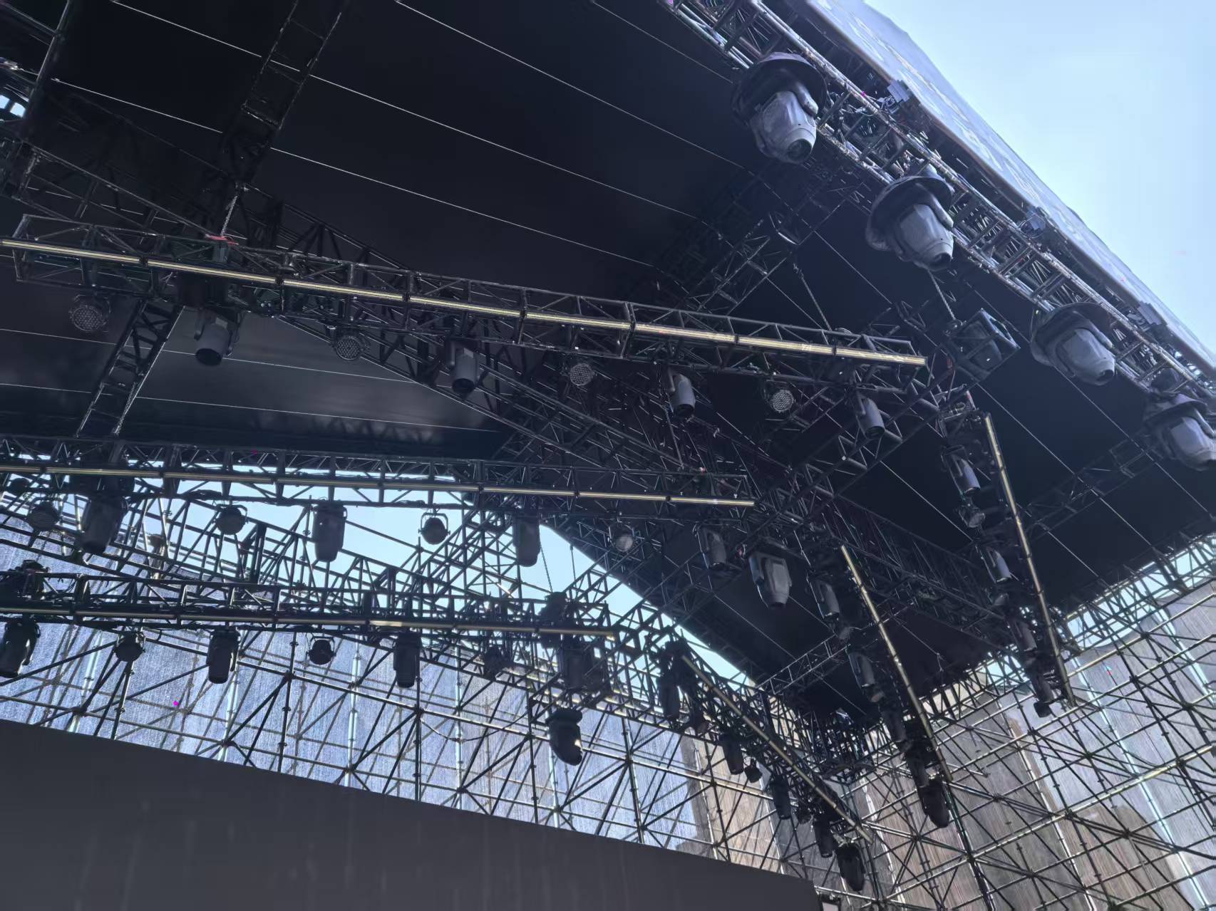 早在 10 月 2 日,懷集體育場(chǎng)的籌備現(xiàn)場(chǎng)便已可見(jiàn)施工團(tuán)隊(duì)的忙碌身影。作為演唱會(huì)燈光工程的核心力量,夜太陽(yáng)燈具有幸參與,針對(duì)體育場(chǎng)開(kāi)闊的空間特性,舞美設(shè)計(jì)團(tuán)隊(duì)制定了 “聚焦舞臺(tái)、輻射全場(chǎng)” 的燈光布局方案。此次投入的 300 支燈具涵蓋十余類(lèi)專(zhuān)業(yè)型號(hào),從舞臺(tái)主區(qū)域的高光效照明到觀眾區(qū)的氛圍渲染,形成了多層次、全方位的光影矩陣。