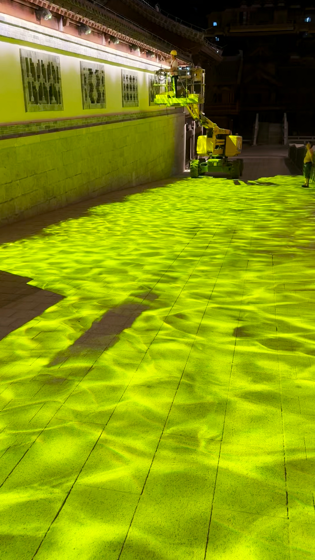 漫步古城街巷,夜太陽水紋燈在地面投射出流動的光影效果。模擬出波光粼粼的視覺效果,與真實(shí)的護(hù)城河水景遙相呼應(yīng)。當(dāng)游客穿行其中,仿佛踏水而行,營造出獨(dú)特的沉浸式體驗(yàn)。古城墻面上,夜太陽圖案燈正在演繹多種經(jīng)典場景。這些高分辨率圖案燈將詩意畫面投射在斑駁的墻面上,實(shí)現(xiàn)場景漸變,讓靜態(tài)的古城墻變身動態(tài)的文化畫卷,吸引眾多游客駐足拍照。